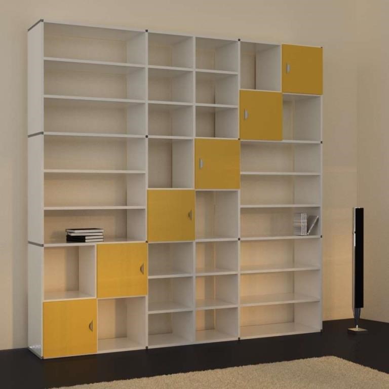 Tipp 3 - Türen und Schubkästen Eine willkommene Abwechslung bietet der Einsatz von Türen und Schubkästen. Deren Anordnung, Farbe oder Holzart bestimmt natürlich ganz wesentlich das Erscheinungsbild Ihres Bücherregals. Spielen Sie mit den Möglichkeiten, die unser Regalsystem bietet. Wechseln Sie zwischen einer ruhigen Aufteilung, die aber dann vielleicht über die Materialauswahl zum Hingucker und Regalunikat wird, und einer scheinbar wilden Anordnung. Hier sind vorallem die kleinen Türen und Schubkastenelemente ein gutes Hilfsmittel. Mit deren Hilfe lassen sich auch ganze Regalskulpturen verwirklichen. Um Ihr neues Bücherregal stimmig und harmonisch in das bereits bestehende Wohnumfeld einzupassen, können mittels der Tür- und Schubkastenfarben bereits vorhandene Farbtöne aufgegriffen werden. Es entsteht so auf ganz einfache Weise ein ausgeglichenes Nebeneinander alter und neuer Möbelstücke.